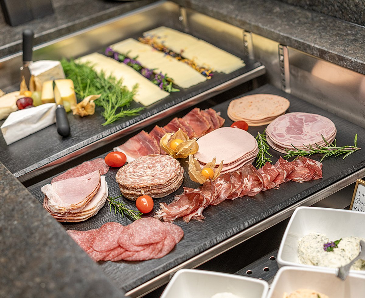 - Sorgfältig ausgewählte Wurstspezialitäten wie Extrawurst, Bauernschinken, Salami, Osso Collo oder Schinkenspeck