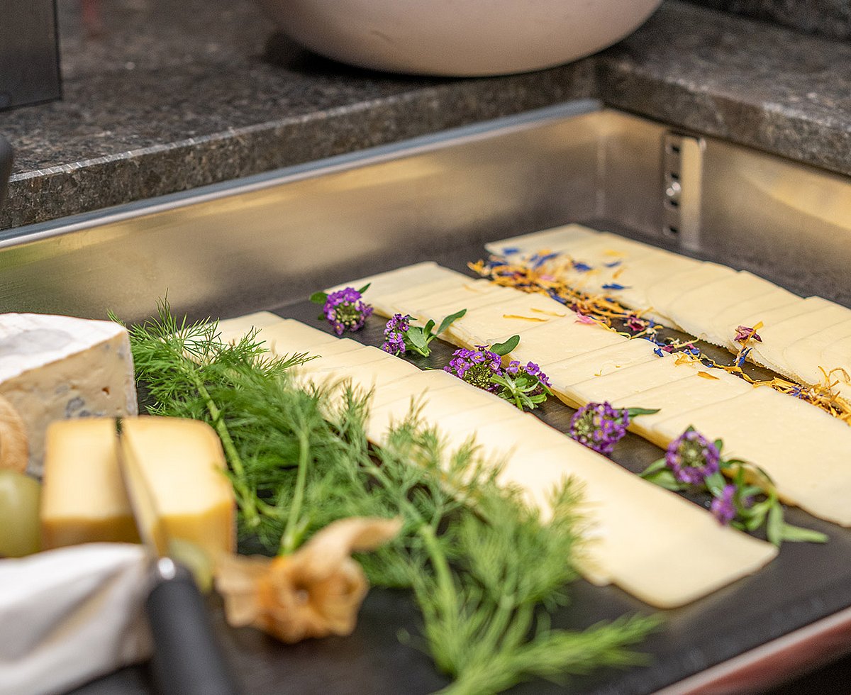 - Verschiedene Sorten Schnittkäse, Brie und Blauschimmelkäse