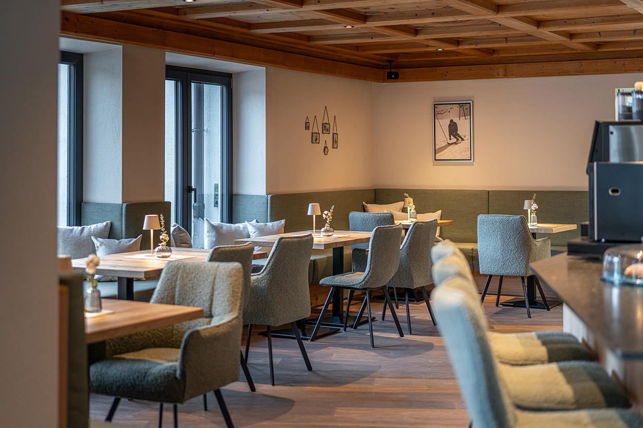 Der Tag geht zu Ende und du möchtest bei einer Tasse Tee oder einem Glas Wein entspannen? Entdecke die gut gefüllte Hausbar und lass dich gerne mit Tipps für die nächsten Tage beraten. Bergluft macht Appetit – darum gibt’s zu deinem Kaffee aus Tirols ältester Rösterei frischen Kuchen oder Süßes.